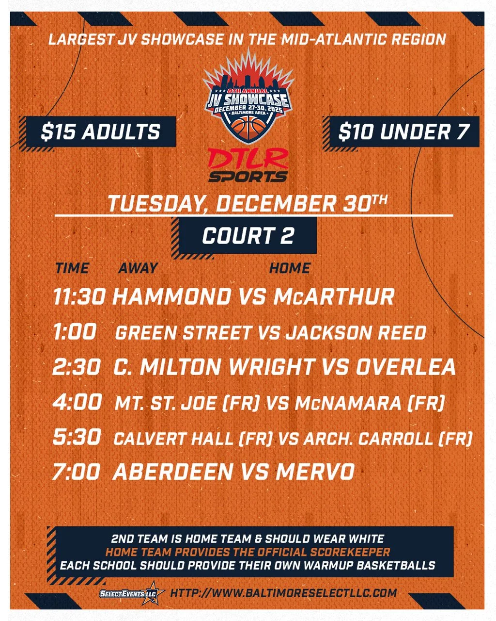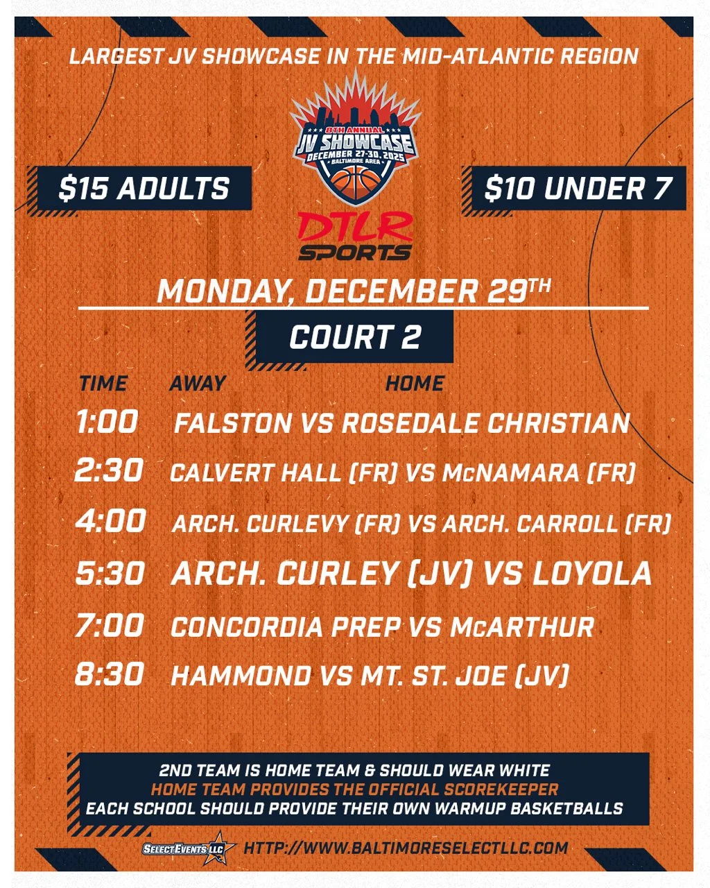Find the final schedule below for the 8th Annual JV Basketball Showcase, December 27th-30th 2025 at Archbishop Spalding High School.